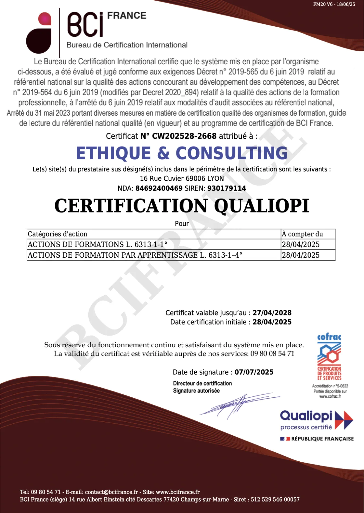 Développez vos compétences avec nos formations certifiantes. Modalités flexibles, financement possible, accompagnement personnalisé.